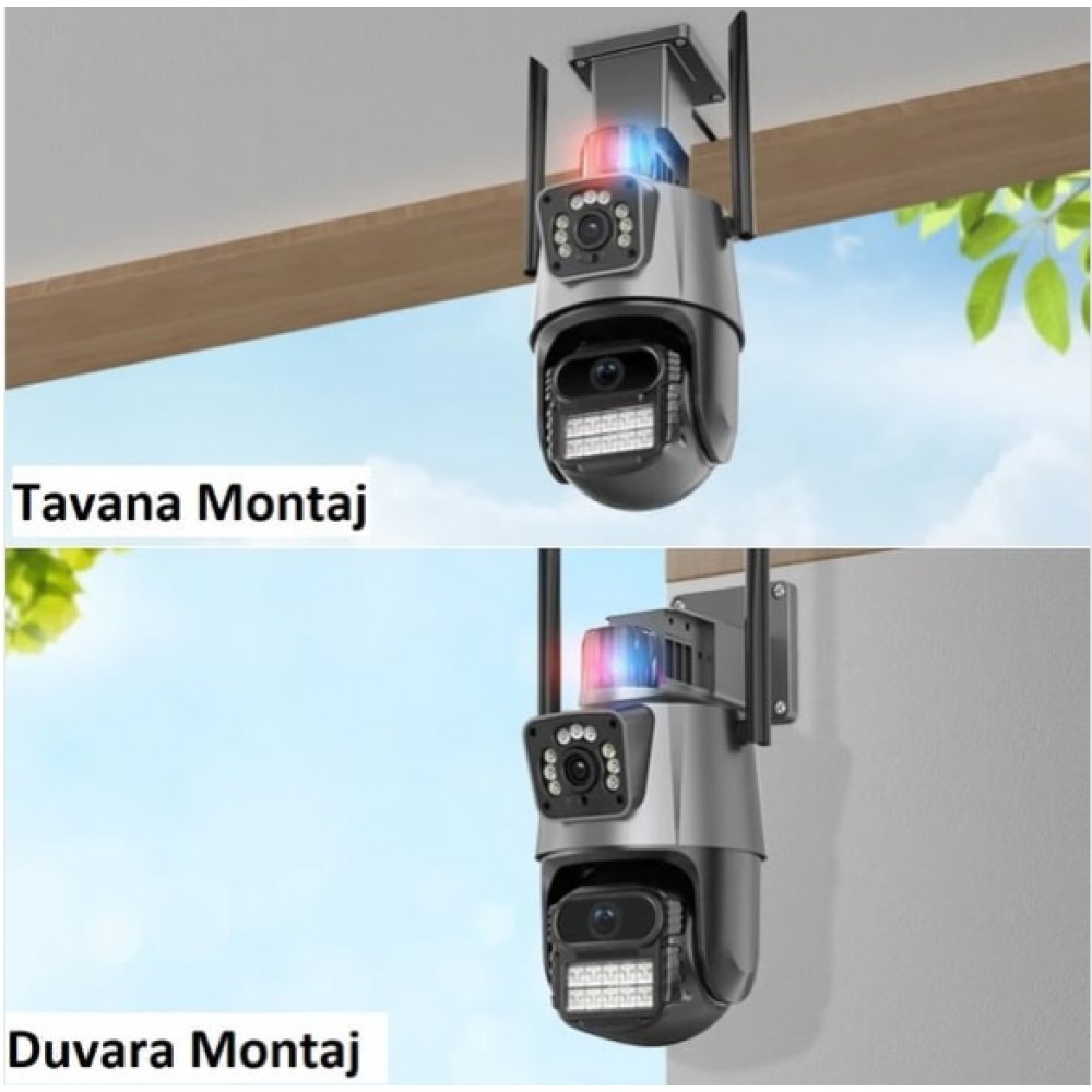 Çift Kameralı 4MP Çakar Işıklı UltraHD Wifi PTZ Kamera ICS-920