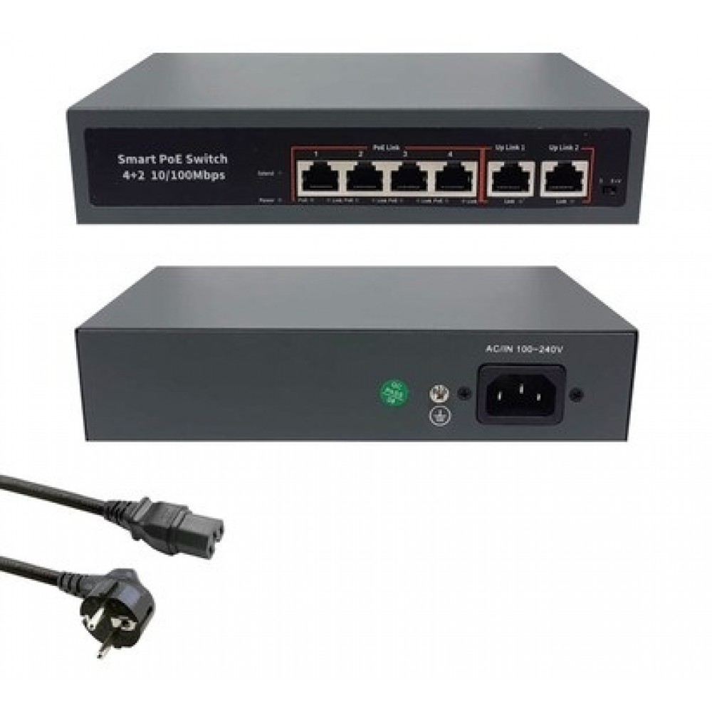 Smart Poe Switch 4 Port 78W 2 Uplink 10/100 Mbps 250M Sm-140p