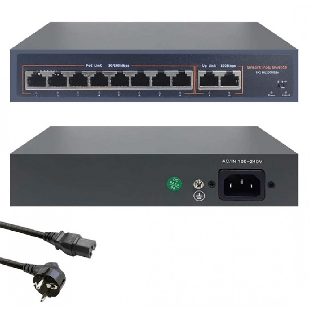 Poe switch 8 port+2 uplink 10/100 mbps sm-180sp